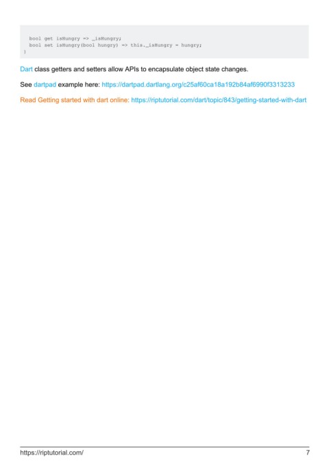 Dart class getters and setters allow APIs to encapsulate object state changes.